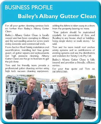 Bailey s albany gutter clean is your locally owned gutter clean business based in albany western australia.