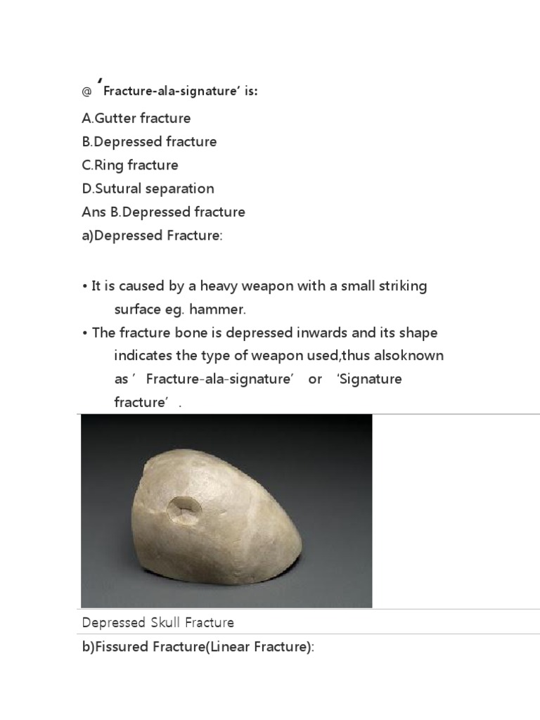 Other accidental causes include falls from a height onto a hard surface or acute head trauma during athletic activity and then there are skull fractures that come about as a result from physical violence.